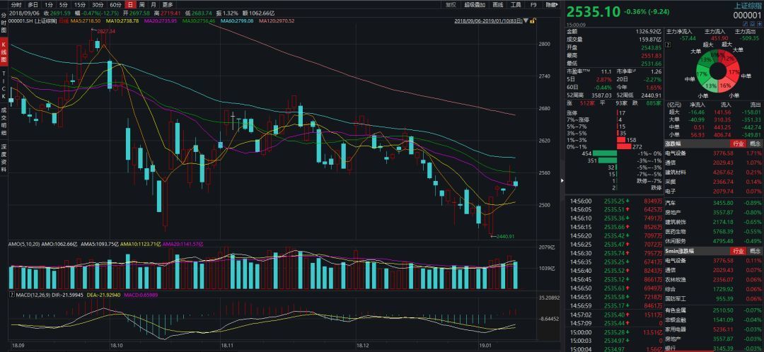 在这里先谈点技术。前面一个低点,是10月19日创下的2449点,随后拉了起来。在2560点以上,构筑了一个中枢。随后跌破了这个中枢,创下2440点新低。