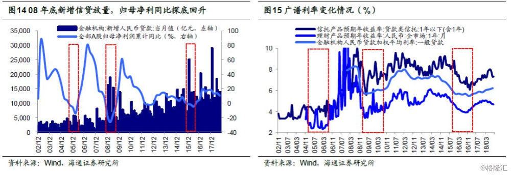 战略乐观、战术务实,等待黎明信号。展望A股中长期,《穿越黑暗迎黎明——2019年A股投资策略-20181209》中分析过,A股处在第五轮牛熊周期末期,战略上乐观:全球各国股市横向比较,A股吸引力更大,中国发展股权融资支持产业升级,居民资产配置将偏向股市。目前市场政策底已经显现,业绩底还未出现,何时能看到市场底?它出现的信号是什么?回顾历史上政策转向,市场底出现的信号是政策落到实处,开始对基本面发挥效用,其中重要的是流动性的量价指标。只有企业实际融资成本下降时才能真正推动企业扩大再生产,需求才能回升,代表性指标是加权平均贷款利率、贷款类信托产品利率等广谱利率。此外,新增信贷放量和M2同比增速回升能反映企业已经实际获得资金投入生产经营。最典型的2008年,市场从1814点再次开启上涨行情直至3478点,主要原因是08年12月与09年1月新增人民币贷款大幅上升至7700亿与16200亿,表明基本面虽然还未扭转,但是前期政策效果已经开始显现。12月21日中央经济工作会议召开,提出“经济面临下行压力”和“宏观政策要强化逆周期调节”,财政政策方面“实施更大规模的减税降费,较大幅度增加地方政府专项债券规模”,货币政策方面“稳健的货币政策要松紧适度,保持流动性合理充裕”,相比之前“稳健中性”描述更积极,由此可见未来宏观政策大概率要加码。等待未来宏观政策的进一步加码,如降息、减税、地产政策结构性放松等。如果货币政策进一步宽松,随着政策逐步落地,流动性相关的量价指标最终将改善。减税方面,比如增值税率下调,预计提高2019年A股净利同比0.5-0.9个百分点。