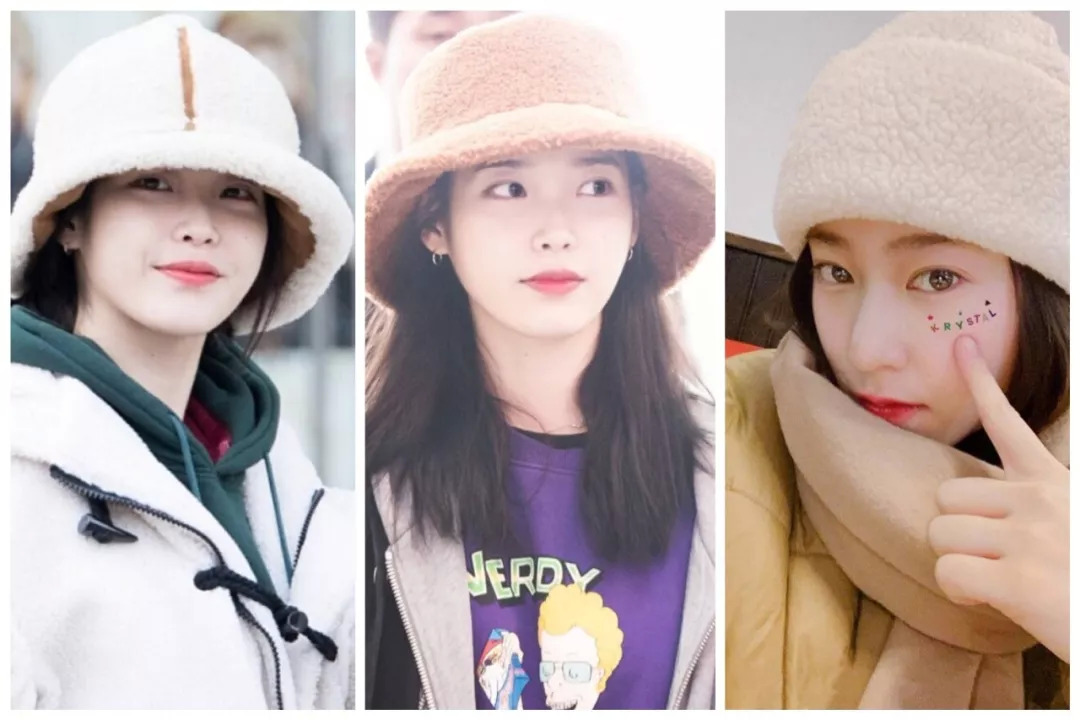 今年羊羔毛元素大概有多火呢?大概就是秀晶、IU都戴了羊羔毛的帽子