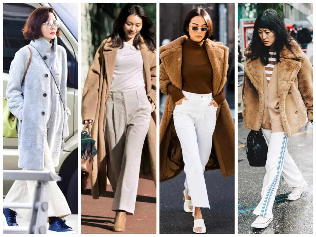 搭配上,泰迪大衣基本都是Oversized版型,所以最不出错的look,就是配铅笔裤。Eva Chen和宣美都这么搭过。
