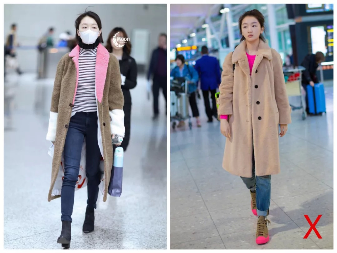 版型。小骨架,一定要选修身款!窄肩姑娘,有肩线的更适合你!周冬雨这两身,显然左款更显精神。