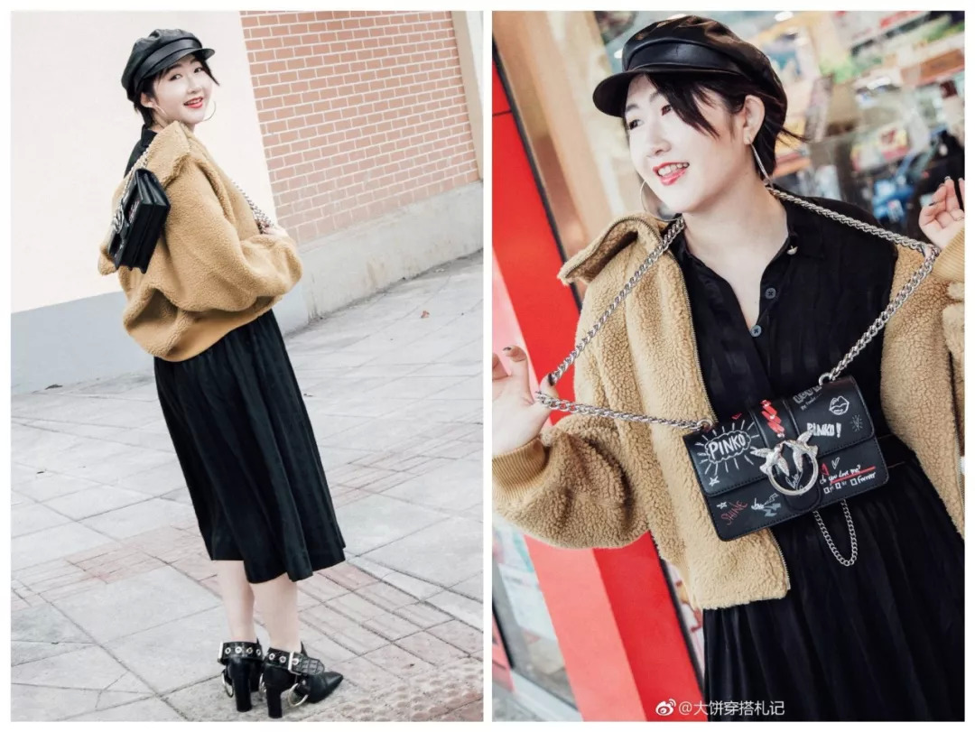 今年流行的短羊羔毛夹克有两种。一种是过腰的,偏H或茧型。比如宇博Chiara、傻脸娜都翻过牌的I am gia。