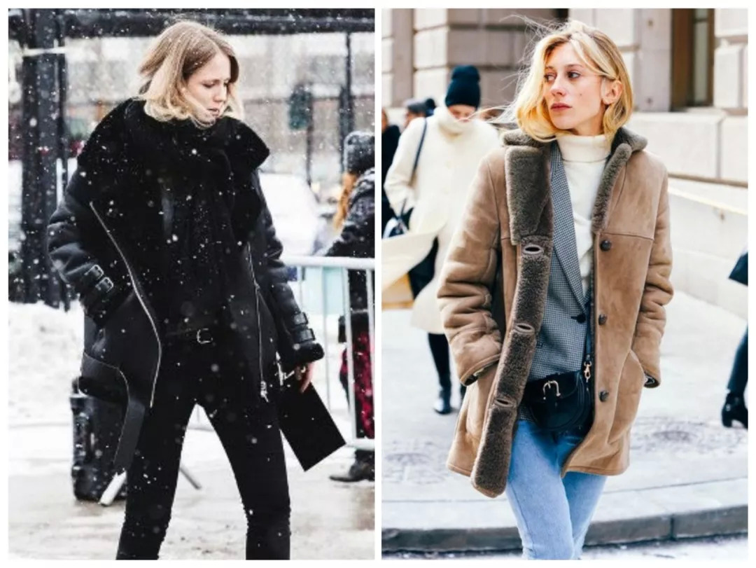 棕色和黑色的皮毛一体夹克,是最最经典的。