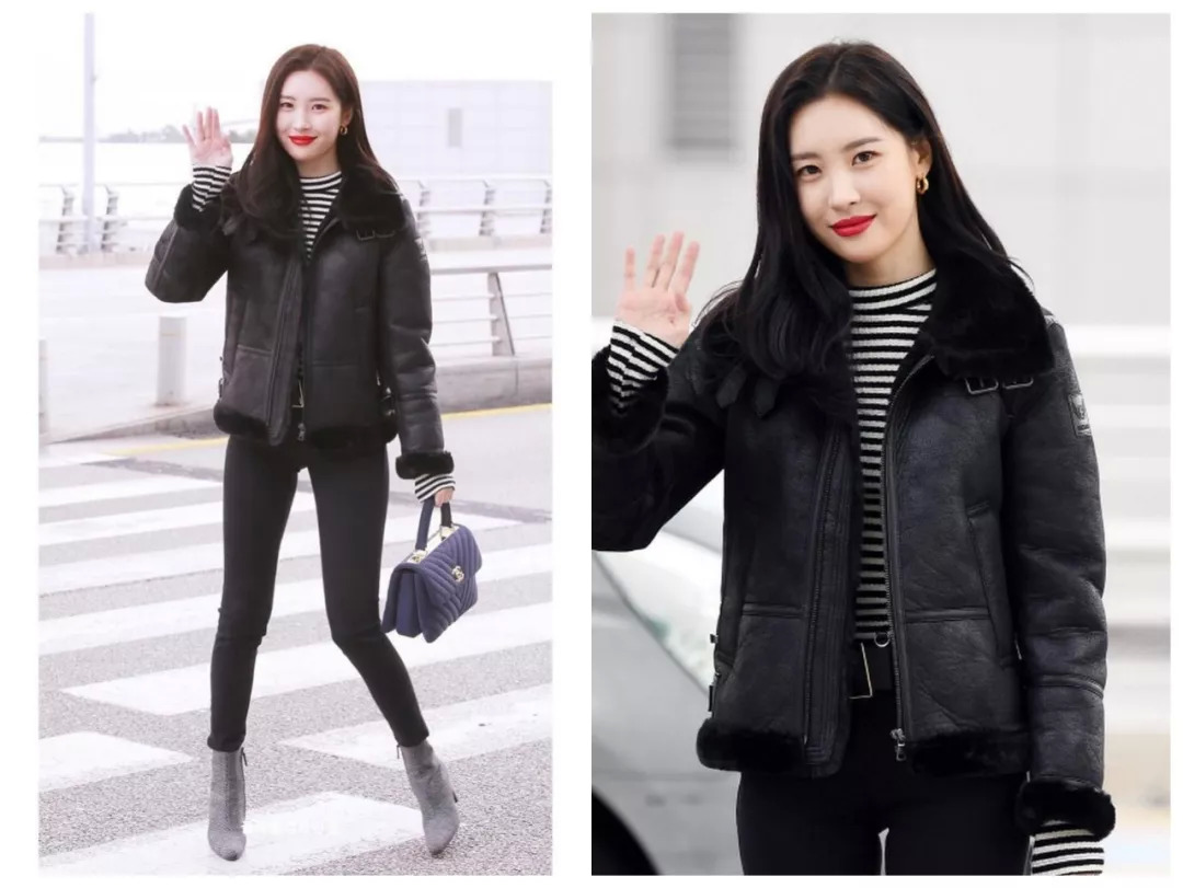 朴信惠最近在机场穿的这件,来自Instantfunk,搭配针织裙,居然有点女人味!这款是两面穿的,同款高俊熙也pick过。