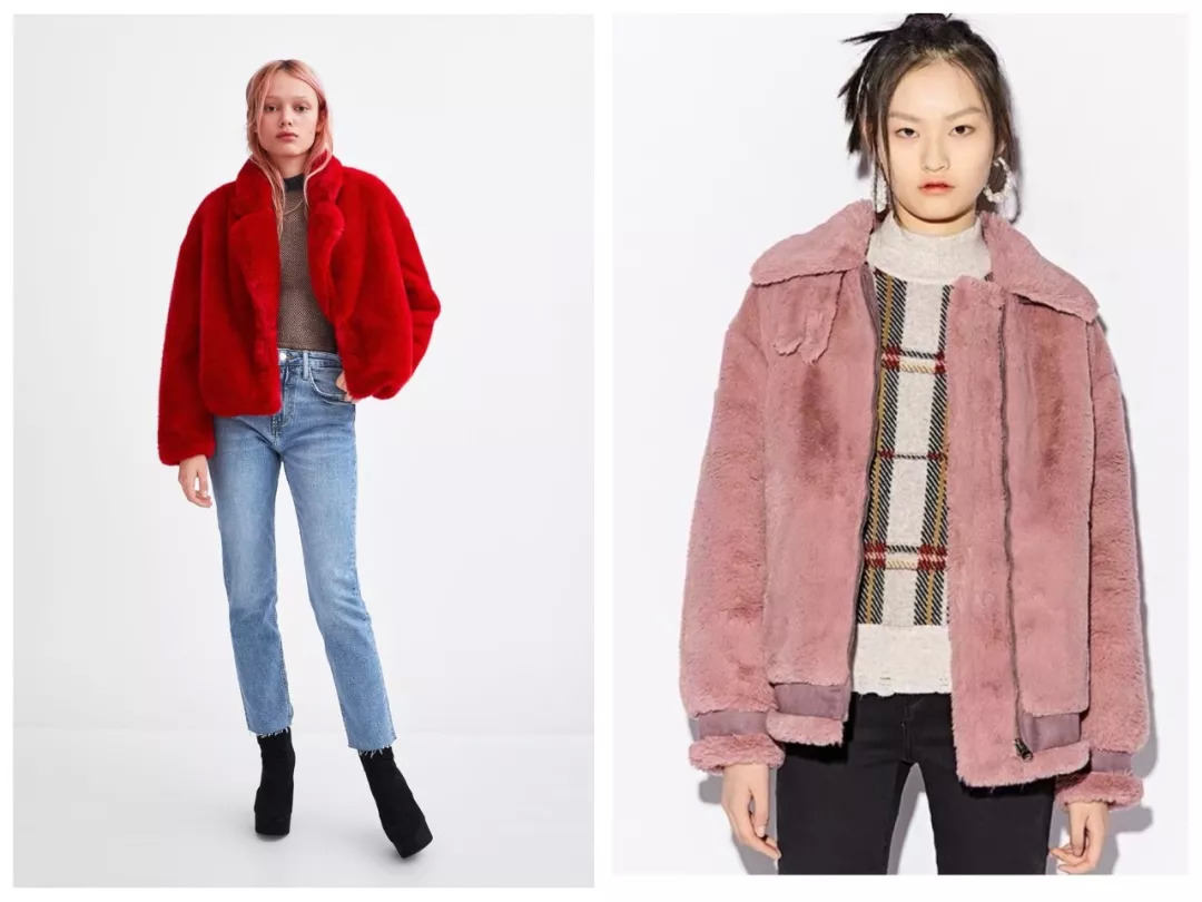 这两款,颜色都hin貌美。红色的过年穿超应景,粉色的,机车设计有种酷酷的少女感。依次来自Zara和地素。