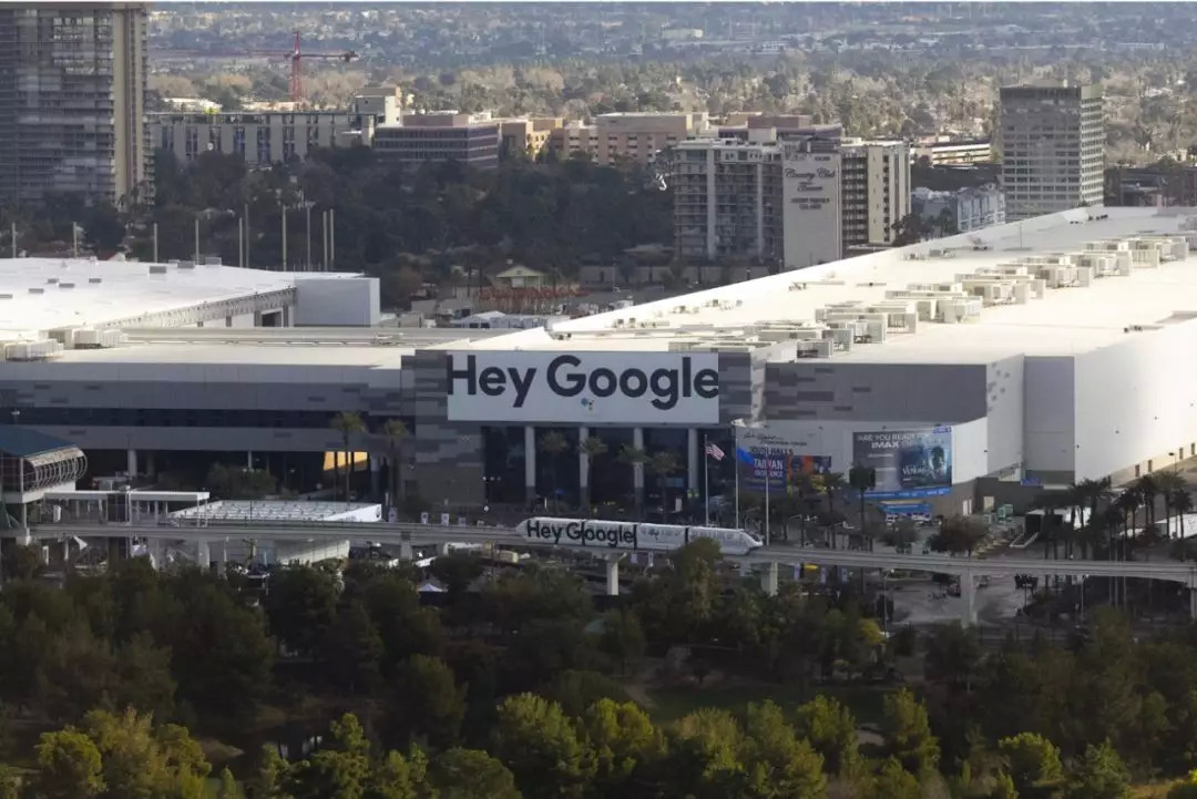 隔着老远就能看到拉斯维加斯会展中心正大门上的Hey Google,不知道的人以为场馆改名字了呢。