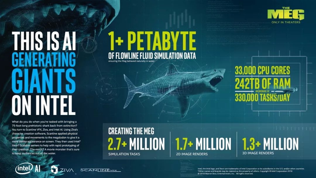 比如制作电影《巨齿鲨》的CGI
