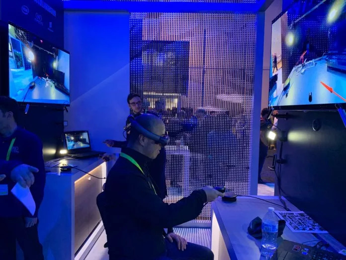 在专门搭建的5G塔台中,英特尔展示了MR远程协同工具。