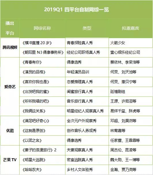 如今2019年伊始,文娱商业观察整理了各平台开年网综,不难发现2019第一季度的节目各有特色,多元内容创新与延续热潮齐头并进。