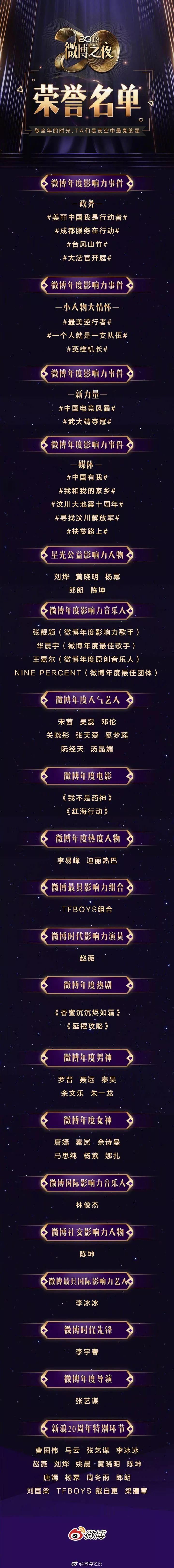 附“微博之夜”荣誉名单