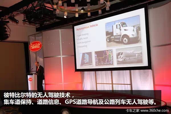 3月25日美国卡车公司彼特比尔特也在当天举行了新产品发布会。介绍了2015新车型和最新的技术,其中最人瞩目的就是最新的无人驾驶技术。