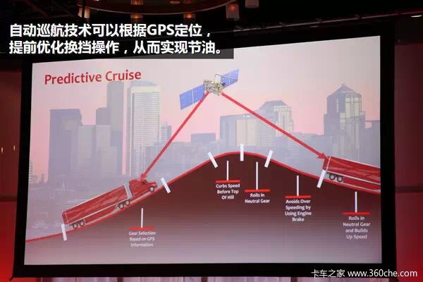 同时自动巡航还可以根据GPS地图提前优化换挡操作,就像一个对道路很熟悉的驾驶员,提前知道前方的道路情况,然后有准备的进行操作。
