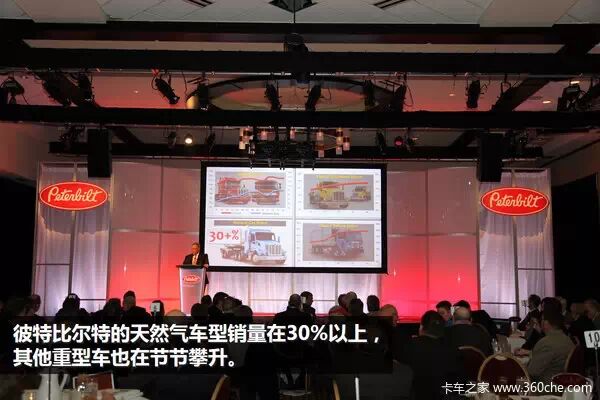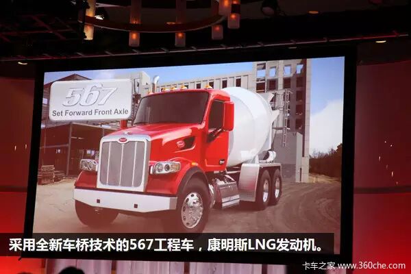 现场彼特比尔特分享了在美国的销量情况,最大的亮点在于天然气车型占30%以上,细分市场,重型车份额也在节节攀升。其中展出的579和567均采用康明斯的LNG发动机,型号为ISX12G。