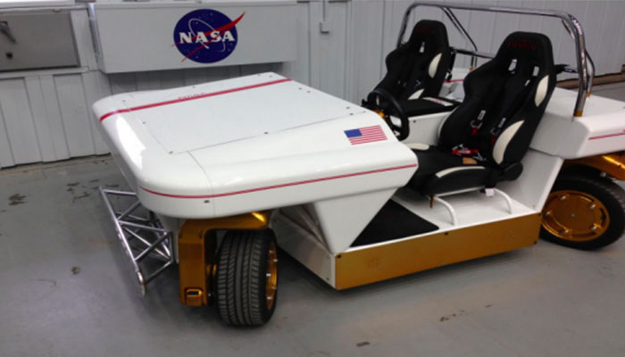 谷歌和苹果都在研制无人驾驶汽车,而 NASA 也不甘其后,推出了一款更加有趣的产品,该产品名为模块化机器人车(MRV)。它是在 NASA 的约翰逊航天中心研发的,用来方便人类在其它星球表面的行动。