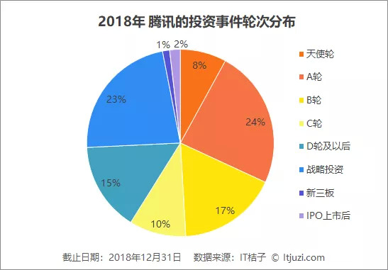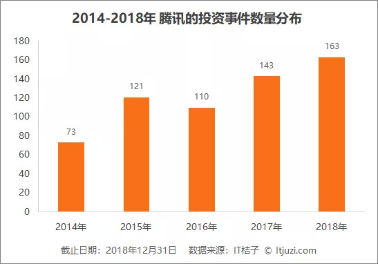 IT 桔子(ID:itjuzi521)追踪到腾讯在 2018 年的投资事件数量甚至比 2017 年还要多 20 起,手握大笔资金的腾讯围绕整个生态,构筑起越来越庞大的投资帝国。