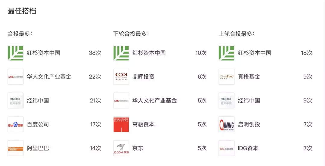 二、最佳投资搭档:与红杉关系最紧密,竟与 BA 搭档超 10 次