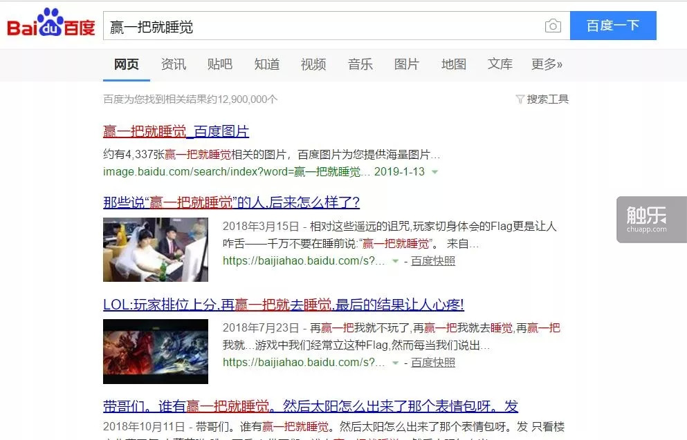“赢一把就睡觉”的搜索结果有1290万个,可见有多少人没睡觉