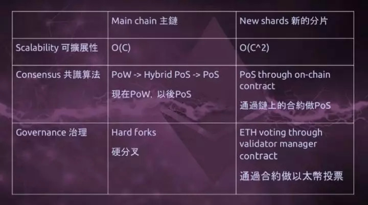 技术上,这次分叉有三类转变,一是共识算法。现在以挖矿为主的就是 PoW 这种较为传统的算法。转变后,任何人都就有机会成为一个出块人,或者成为一个验证者。第二是 sharding(分片),现在以太坊开放一条链,今后会有更多链,能够承载更多应用,吸引更多用户,同时又能够让这些应用上的资源实现交互。这个技术是近两年最重要的一个方向之一。