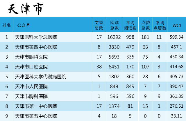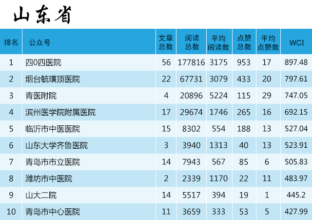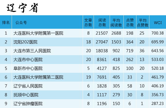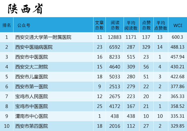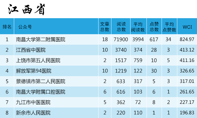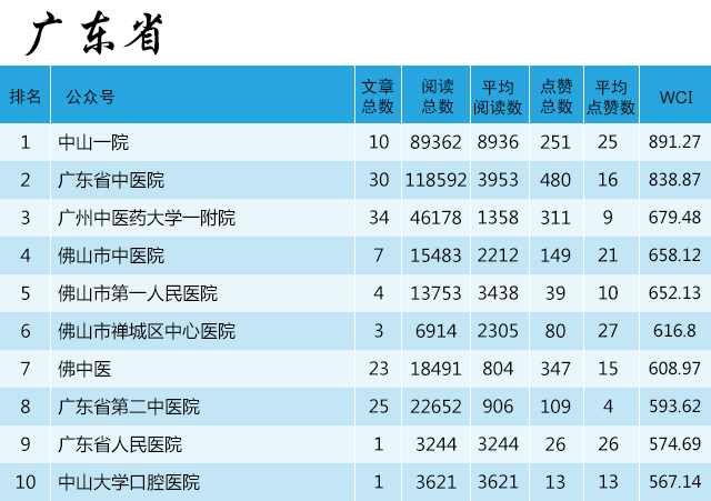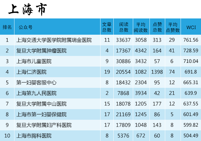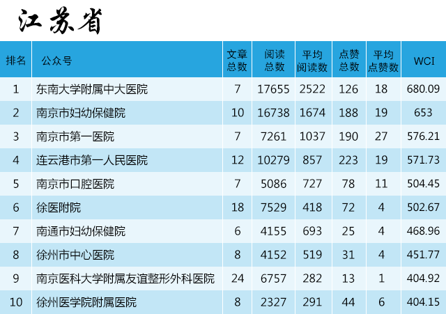 北京市的北京大学人民医院、上海市的上海第一妇婴保健院、广东省的佛山市中医院、江苏省的徐州医学院附属医院,这四家医院微信的订阅号和服务号纷纷登上了各自所在(市)省份的前十位,可谓花开并蒂全靠实力啊。