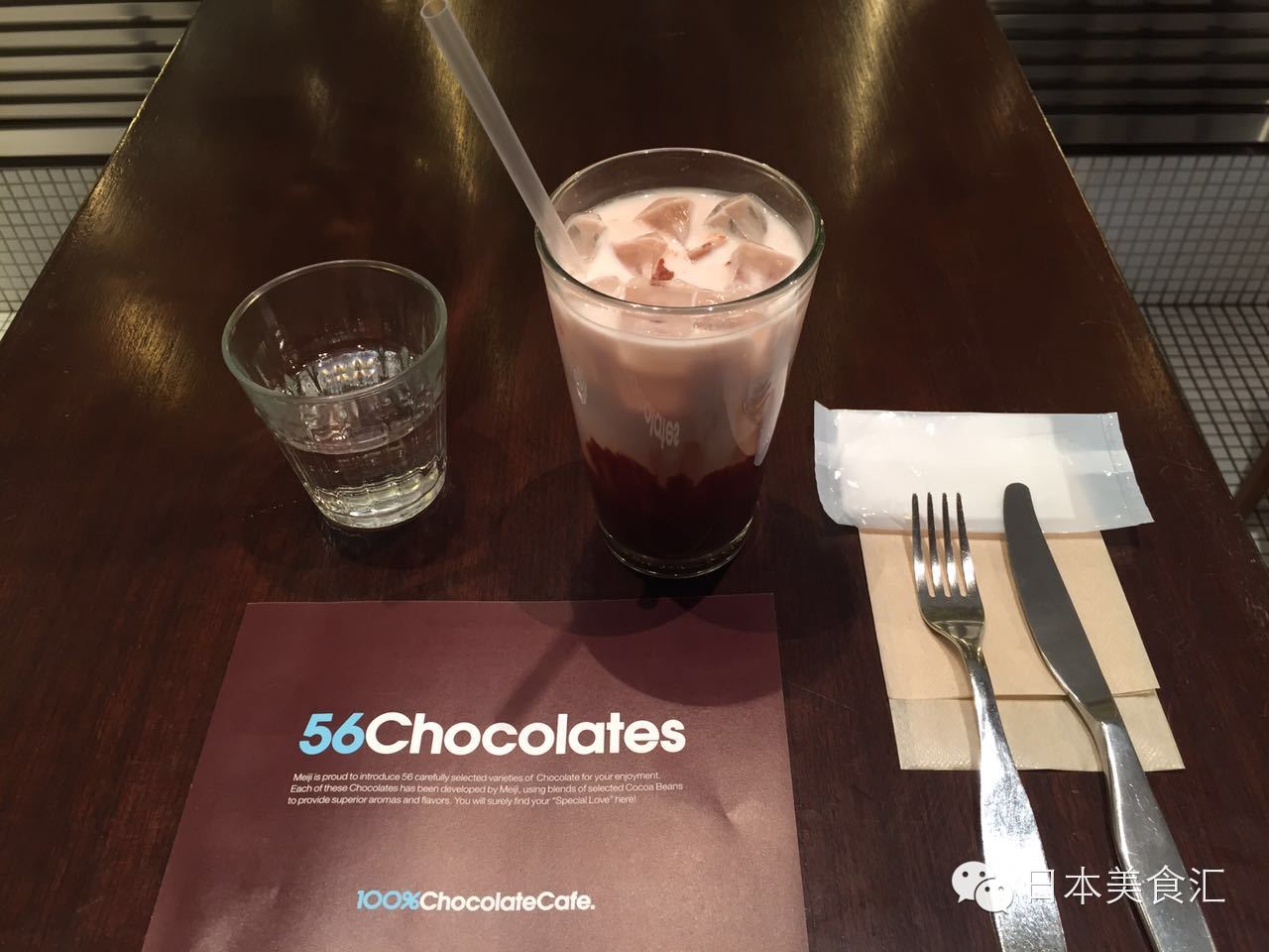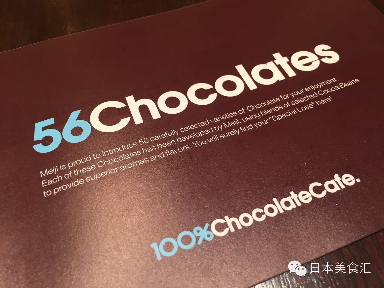 贴心的店员看出了我的兴趣,马上送给我一本介绍明治56种巧克力的小册子,并把菜单放在我选好的餐桌上让我慢慢挑选。