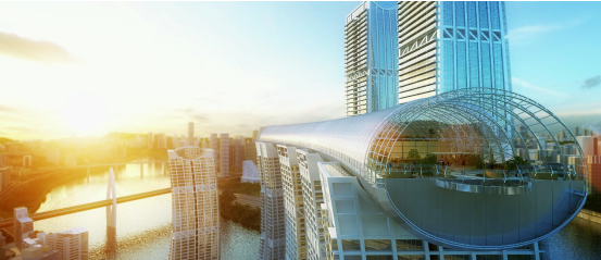 水晶连廊这种高空建筑形态,是凯德集团基于对城市的理解、对环境的珍视、和市民需求的解读所做出的积极探索和全新尝试,是极具未来意义的城市空间范本。这不仅彰显了“共生城市,智慧生活”的理念,也充分合理地高效利用重庆的城市和自然资源,革新城市天际生活的想象。