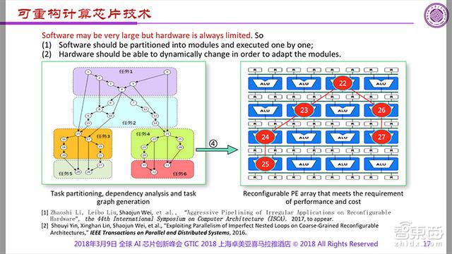 也就是说,沿用这种架构设计出来的专用芯片,可以让芯片的计算能力按照软件的需求来调整适应,而不是沿用传统芯片设计的刚性架构,让应用适应架构。对于现在尚未定型/统一的各类AI算法而言,可重构计算成了AI芯片设计的一个重要研究方向。