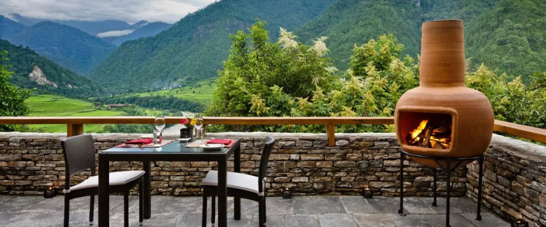 酒店位于绿意盎然的普那卡山谷半山腰,美丽的喜马拉雅山区内。以木质、石制以及瓦制材料为主,宽敞的房间内设有原木制作的家具、手工地毯以及柴烧式的火炉,这一切让宾客时刻感受到不丹王国那种简单又实在的生活方式。