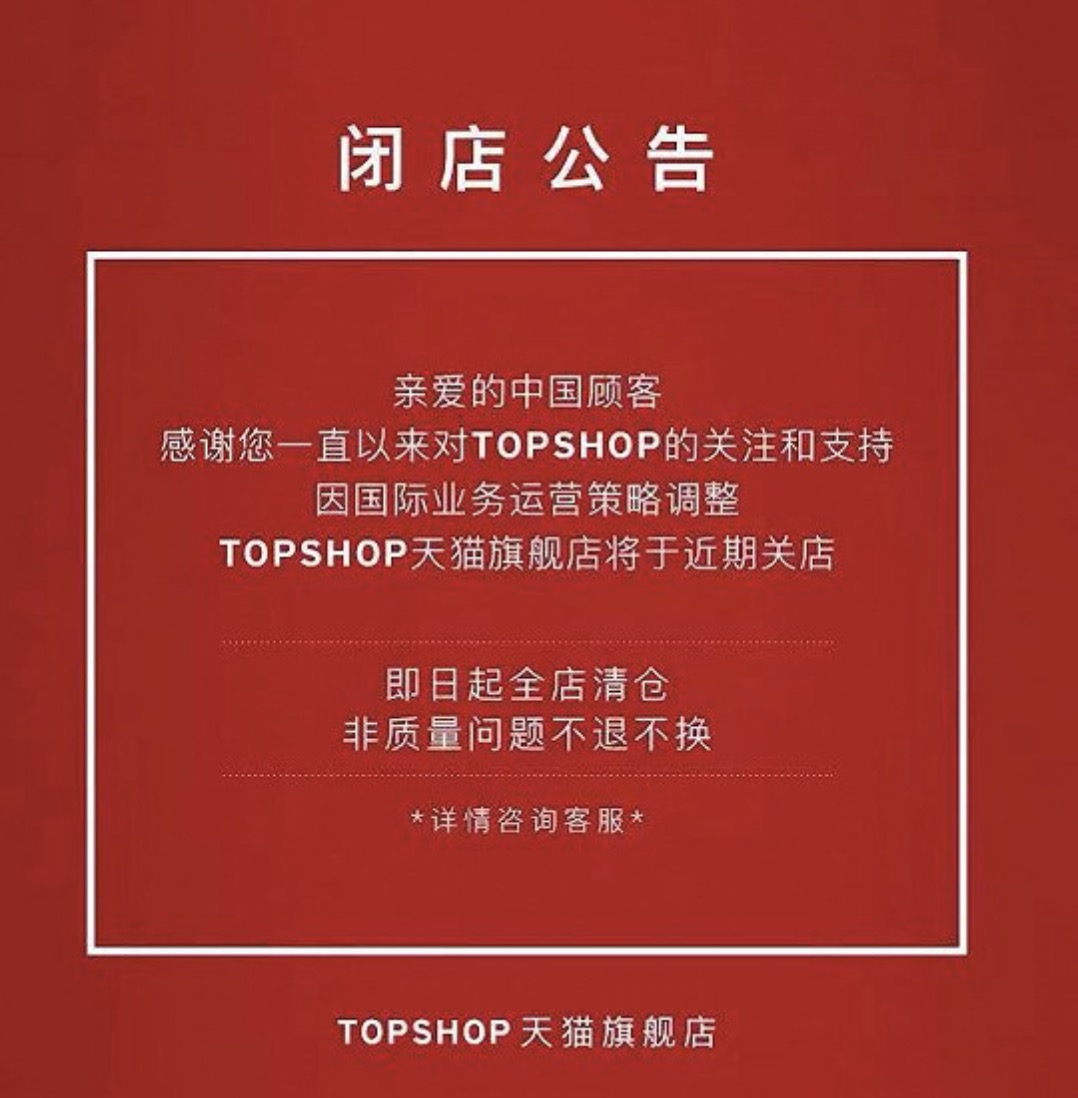 回过头看,除了入场晚, Topshop也没有找到最合适的中国合作伙伴。2018年8月4日,Topshop发布声明,与尚品网提前终止合作协议,称要在中国寻找新的合作伙伴,不过目前未有最新进展。
