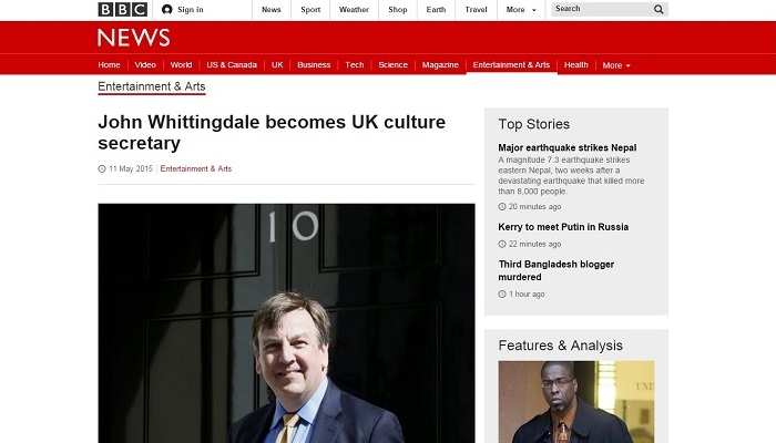 在执政党保守党成功赢得英国大选后,首相卡梅伦5月11日出人意料地委任保守党议员约翰·惠廷戴尔(John Whittingdale)为新一任文化大臣。惠廷戴尔一直是英国广播公司(BBC)批评者中声音最大的一个,此举相当于对BBC宣战。