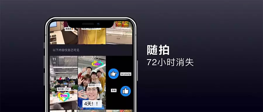 目的:72小时之后,视频内容仅自己可见,进一步降低社交压力,放飞自我真实人格,不用担心未来被“挖坟”