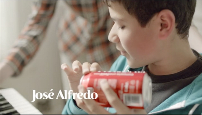 可口可乐还用一则广告片记录了视障人士触摸到“盲文罐”后的反应:牵着导盲犬的中年人找到附近的可乐自动贩卖机,买到一罐熟悉的可口可乐后,通过触摸上面的盲文惊喜地读出了爱人的名字;父母为失明的儿子买来可乐,儿子接过后迟疑地说出自己的名字,脸上露出笑容……因为看不见这个世界,视障人士失去了生活中很多乐趣,然而在这一次可口可乐“Share a coke(分享可乐)”的活动中,他们不再缺席。