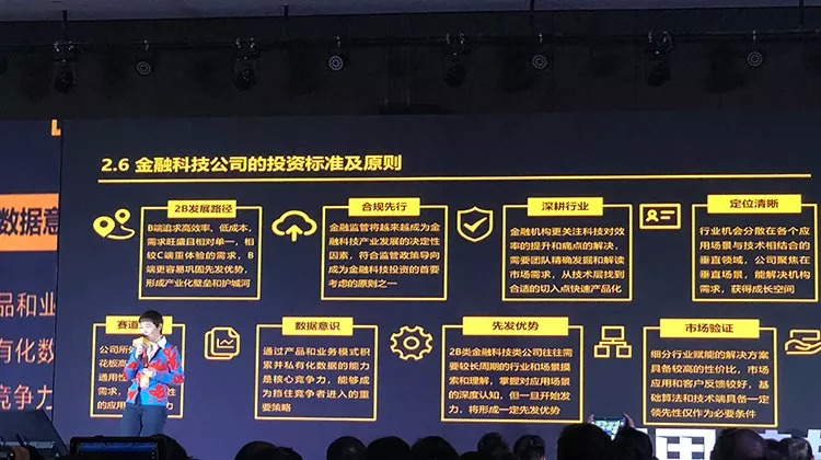 既然赛道发生了变化,整个投资市场的架构也会发生特别大的变化。如果创业者的领域是跟金融科技相关的,如果想从2C转到2B,需要问自己:我的技术有没有壁垒?我对业务的理解有没有壁垒?我对监管有没有一个非常好的理解?