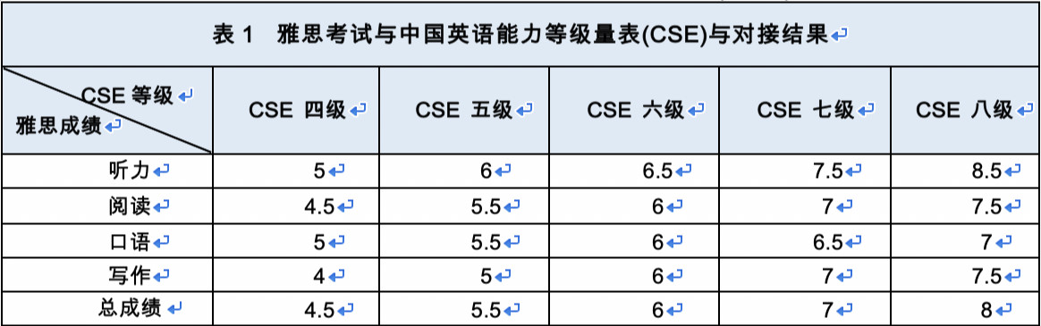 根据此次发布的对接结果,中国英语能力等级(CSE)量表的四至八级分别对应雅思成绩的4.5、5.5、6、7和8分。