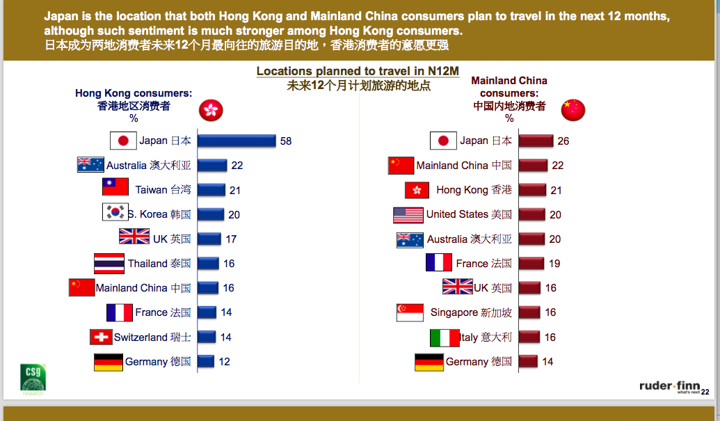 中国消费者依然热衷于旅行购物,日本香港是最其最青睐目的地
