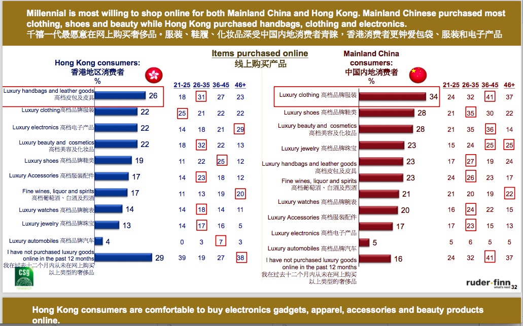 这样的趋势也将影响接下来的12个月。在未来一年中,两地被访者均表示在消费上依然保持信心。尽管面临2018年宏观经济环境的冲击,46%的中国内地消费者和32%的香港消费者表示,未来一年将增加在奢侈品购买上的开销。