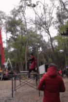武打戏演员表演轻功时