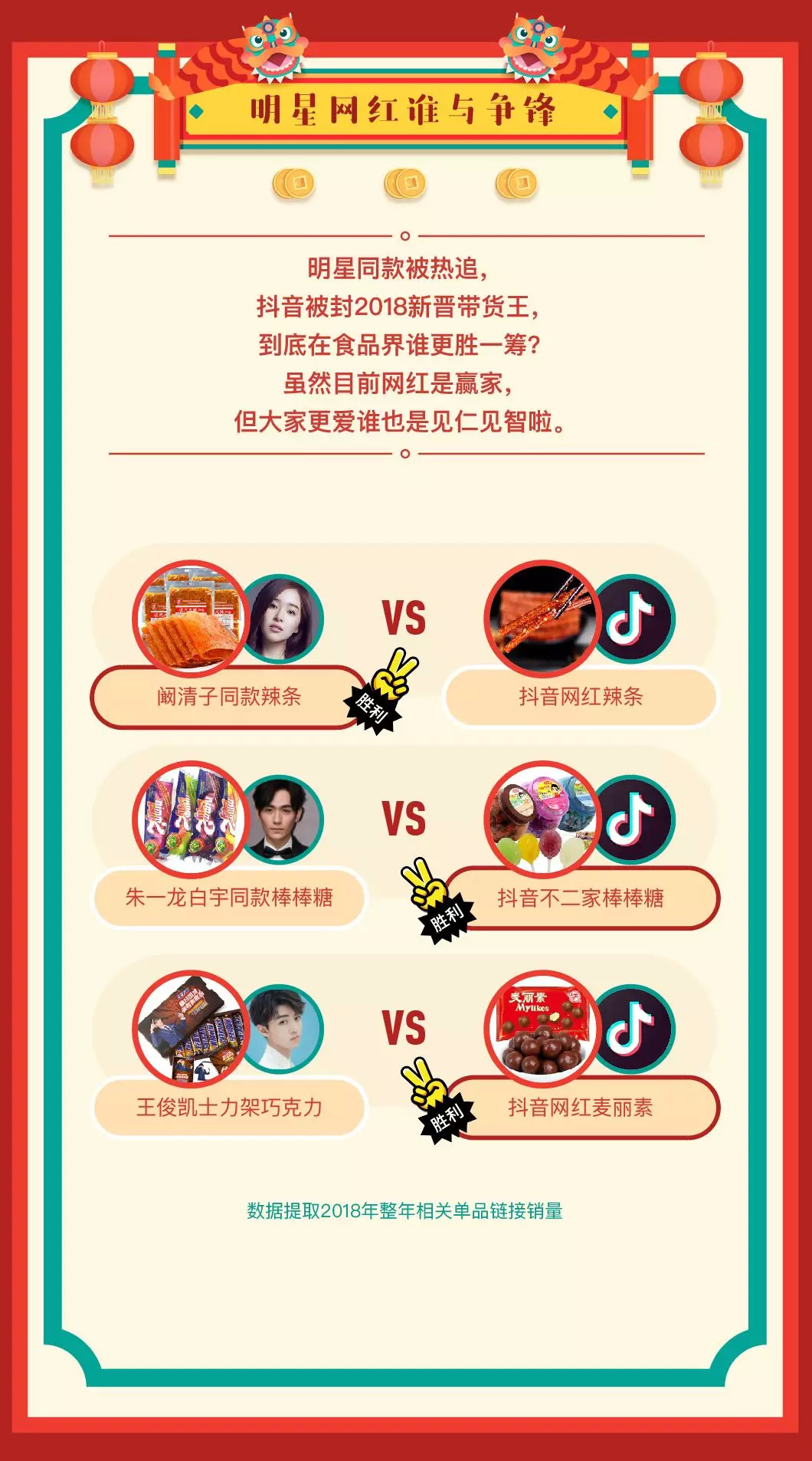 结果发现,唯“辣条一姐”阚清子胜过抖音同款辣条,捍卫了自己在“线上零食”的地位,其余的朱一龙白宇同款棒棒糖和王俊凯士力架巧克力都没战胜抖音同类别零食。如果让你们来选,你会选择谁呢?