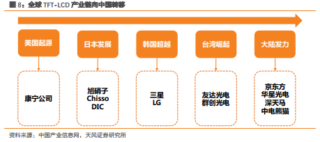 1)从2010年起,大陆LCD面板厂逐步发力,全球液晶面板产能持续从日韩及台湾向大陆转移,中国大陆已成为全球LCD面板出货最重要的地区之一。