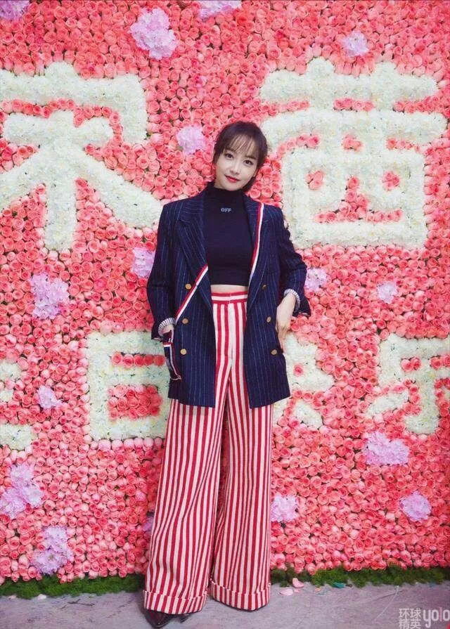 让我们来看看宋茜的经典示范穿搭:红白竖条纹阔腿裤,简单又经典的配方,显得人又瘦又高,一双大长腿无所遁形。