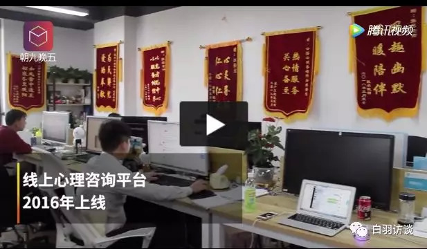 (某互联网心理服务公司的墙上挂满了锦旗。)