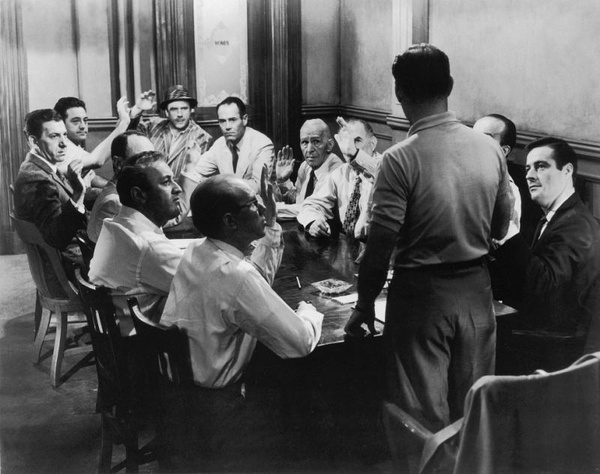 这样的反转情节多少让人感到吃惊,因为在从头吵到尾的虚拟法庭上,唯一理性思辨的只有8号陪审员,是他在努力试图说服其他人进行有效的讨论,可他的身份竟是位检察官,与之相对比的其他平民就沦为了依然没有觉醒的乌合之众。