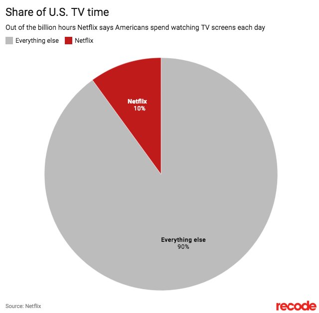 而面对不断加剧的竞争,Netflix的CEO里德·哈斯廷斯访谈中提到,事实上Netflix的内容收看量已经在占据了美国本土每天10亿小时电视内容中的10%。他们其实更关心整个娱乐行业而非某一个具体的竞争对手,“我们其实是在和XBOX(游戏主机)、《堡垒之夜》(热门游戏)竞争而非HBO”,哈斯廷斯表示,“我们乐见迪士尼发布了自己的流媒体平台,可能他们发展几年会达到每天5000万的收看量但离每天一亿还差了不少。”