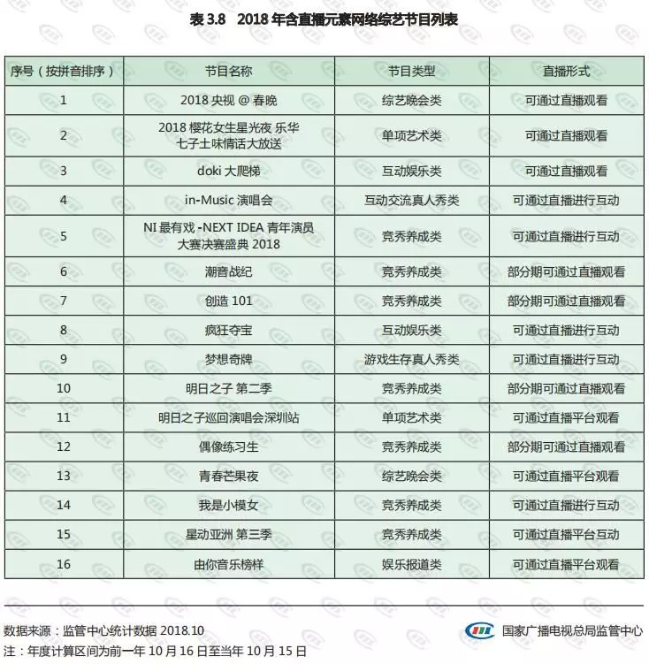 与选秀节目的“秀”相对比,偶像养成类节目更加放大了“养”的过程,参加节目的练习生们大部分不具有专业水平,是需要通过节目去挖掘、去培养的,而培养的过程则是观众们透过镜头可以看到的,也可以参与“培养”的。数据显示,2018年,运用直播元素的网络综艺节目共有16档,偶像养成类节目就占了近一半。