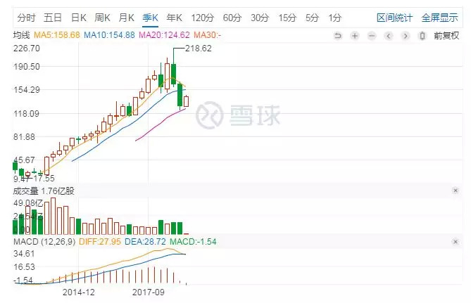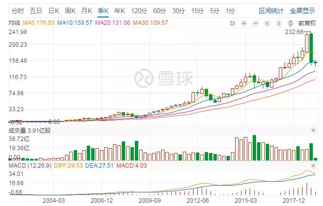 以苹果为例,股价从2013年的50美金(复权后),到2018年的高点232美金,五年增长了接近5倍。