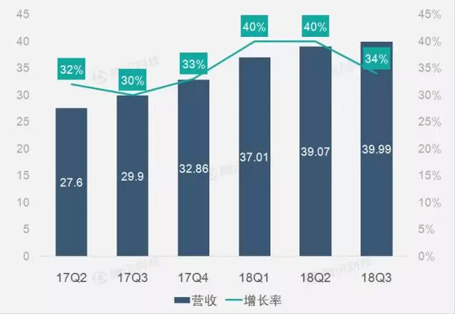 爱奇艺的市值是128亿美元,对应的是,2018年第三季度的营收是10亿美元,同比增长48%,其中4.15亿美元来自会员费,同比增长78%,两项增幅均高于Netflix,但仍处于亏损阶段。也就是说,爱奇艺的收入规模目前是Netflix的25%。