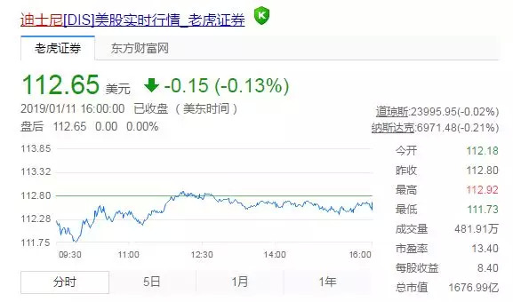 而影视娱乐公司中,市值类似的公司,我能想到的是迪士尼。股价112美元,市值1676亿美元,市盈率13倍。
