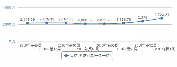 这是爱奇艺的日均IP访问量,平均每天在360万左右。从用户数据来看,Netflix大约是爱奇艺的6-7倍。当然,考虑到爱奇艺移动端占比更大,可能实际差距比这更小一些。