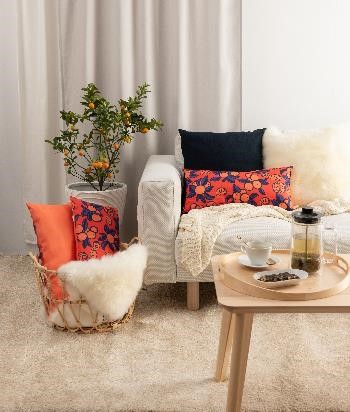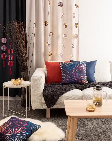 选取烟花元素的纺织品,让平常的客厅轻松升级成充满节日气息的客厅