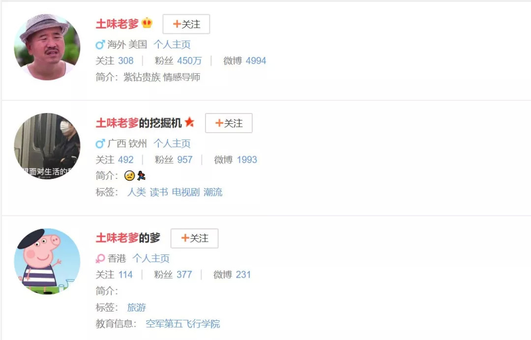 2017年,微博上“土味挖掘机”、“土味老爹”等账号兴起。这些账号的主要工作,是批量搬运“快手”上的“土味视频”。这是“土味文化”向主流迈进的重要时间节点,而快手则是源发阵地。