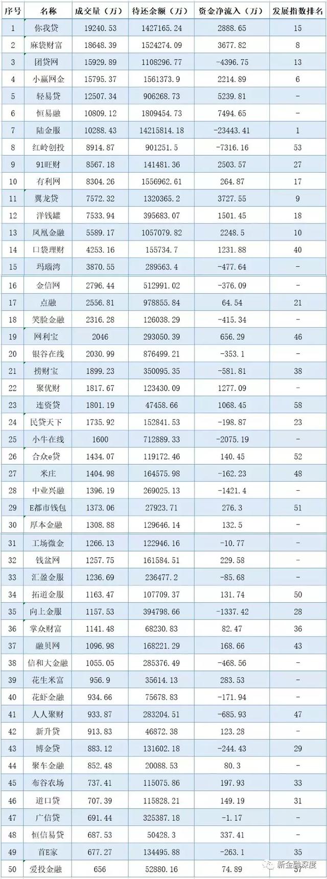 数据显示,上周网贷行业累计成交量195.76亿元,环比上涨10.54%,达到12周以来最大涨幅。新金融头条统计成交量排名靠前的50平台发现,有34家平台均有几十万到几千万不等的资金流入,其中8家平台资金净流入在2000万元以上。